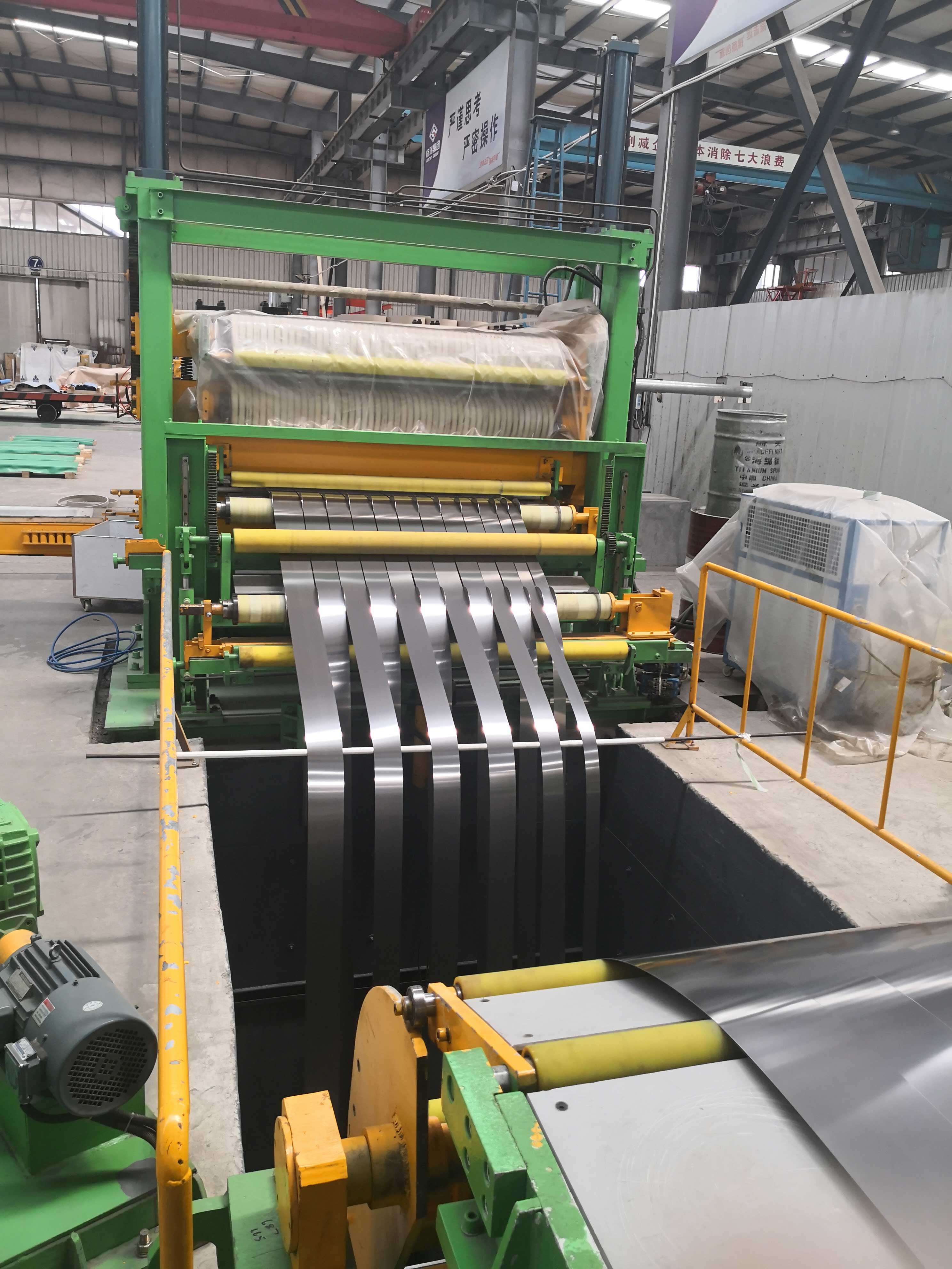 作者: 時間:2019-05-18 瀏覽:7245人次縱剪分條設備是格瑞集團剪切加工中心近年來引入的一頭“猛虎”,如何讓“猛虎”顯威是整個分條設備班組成員需要攻克的技術難題。近期我們的分條設備班組經過不斷試驗和認真總結,技術能力有了明顯提升,實現了寬1219mm厚0.5mm的鈦卷板一次性分條17條,最寬條寬度是122mm,最窄條寬度是55mm。