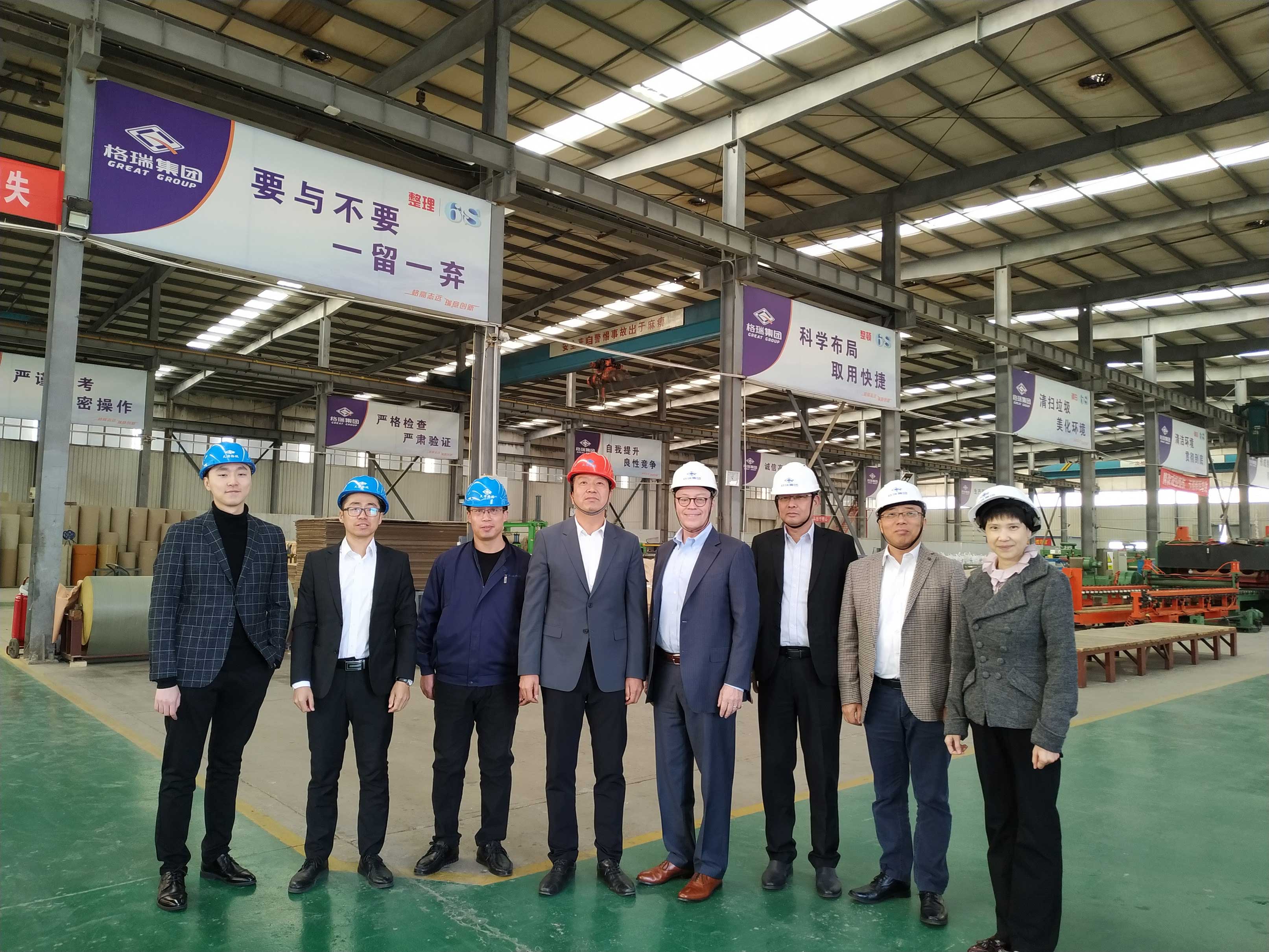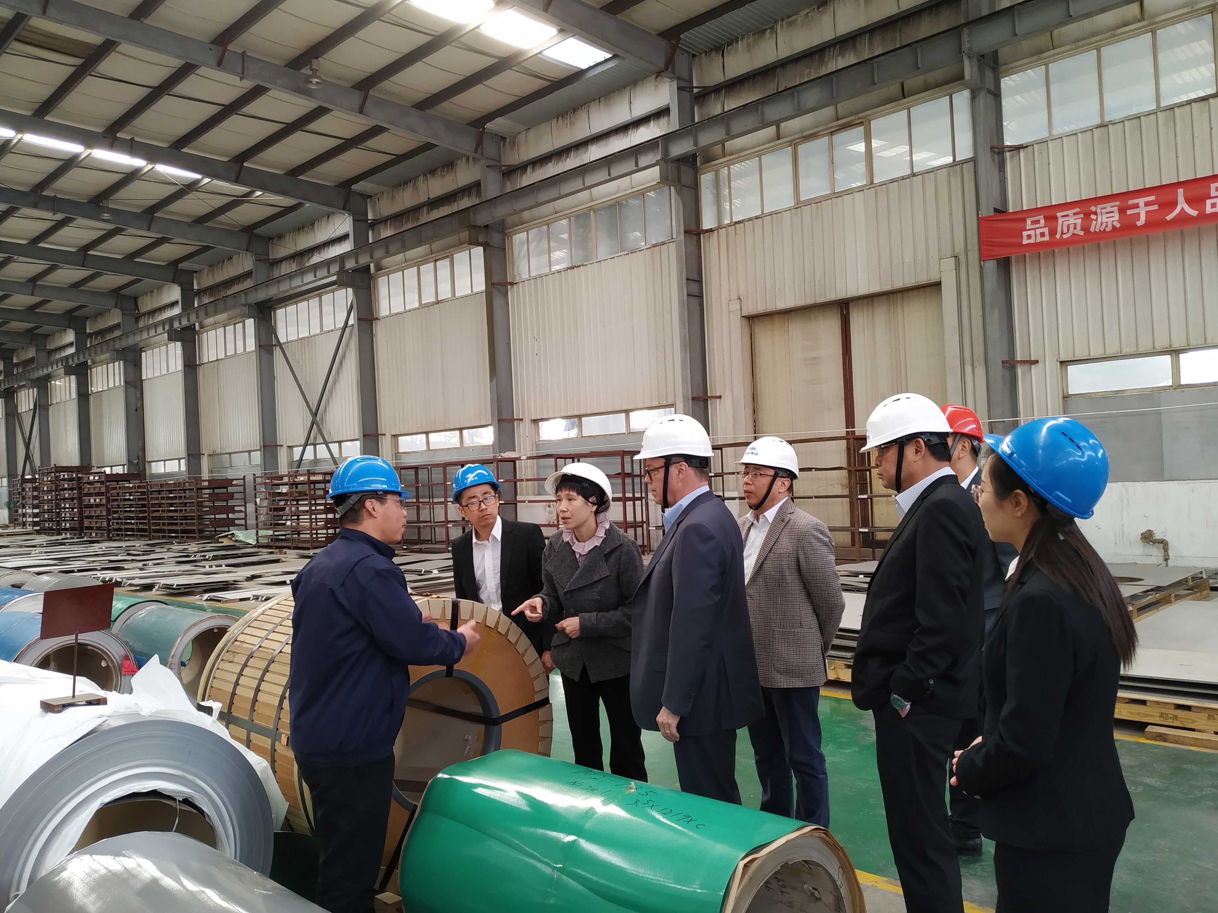 首先一行人參觀了格瑞剪切加工中心及庫房,期間Kevin B. Kramer先生和Vincent Fu先生分別對我司設(shè)備情況及庫房倉儲情況進行了了解,二人了解情況后對我司以客戶為導(dǎo)向的“快而精”的運營模式及倉儲量給予了高度贊揚,并表示希望與格瑞集團有更深入的合作。